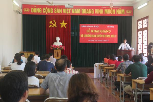 Sáng ngày 18/9, Trường Chính trị Tô Hiệu phối hợp với Sở Nội vụ Hải Phòng tổ chức khai giảng lớp Bồi dưỡng ngạch chuyên viên chính khóa 11. Tham dự Lễ khai giảng có các đồng chí: Trần Thị Bích Hằng - Bí thư Đảng ủy, Hiệu trưởng Trường; Phạm Hồng Hà - Phó Giám đốc Sở Nội vụ; Nguyễn Văn Hiểu - Phó Hiệu trưởng Trường; đại diện phòng công chức Sở Nội vụ; đại diện lãnh đạo một số khoa, phòng nhà trường và học viên lớp tham dự.