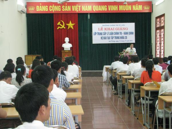 Sáng ngày 15/10, Trường Chính trị Tô Hiệu đã tổ chức Lễ khai giảng Lớp Trung cấp lý luận chính trị - hành chính hệ đào tạo tập trung khóa 20. Tới dự buổi lễ, có đồng chí Nguyễn Huy Hảo – Hiệu trưởng nhà trường; đồng chí Trần Thị Nga – Phó Hiệu trưởng trường; đại diện các khoa, phòng trong trường cùng toàn thể học viên của lớp học.