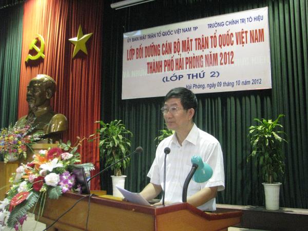 Thực hiện Hướng dẫn số 46/HD-MTTW-BTT ngày 16/1/2012 của Ban Thường trực Ủy ban Trung ương MTTQ Việt Nam về nhiệm vụ công tác tuyên giáo của Mặt trận Tổ quốc Việt Nam năm 2012, ngày 09/10, Ủy ban Mặt trận Tổ quốc Việt Nam thành phố đã phối hợp với trường Chính trị Tô Hiệu tổ chức lớp tập huấn cho cán bộ Mặt trận Tổ quốc thành phố. Tới dự có đồng chí Ngô Kim Vinh – Phó Trưởng ban Dân vận thành ủy, đồng chí Hoàng Xuân Sơn – Phó Giám đốc Sở Ngoại vụ, đồng chí Nguyễn Văn Tạo – Phó Chủ tịch Ủy ban MTTQVN thành phố, đồng chí Trần Thị Nga – Phó Hiệu trưởng trường Chính trị Tô Hiệu cùng hơn 100 học viên là cán bộ Mặt trận Tổ quốc đến từ các quận, huyện trong thành phố.