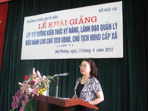 Sáng ngày 23/4/2012, Trường Chính trị Tô Hiệu đã phối hợp với Sở Nội vụ tổ chức khai giảng lớp bồi dưỡng kiến thức, kỹ năng lãnh đạo, quản lý, điều hành cho chủ tịch HĐND, chủ tịch UBND cấp xã. Tham dự buổi lễ có đồng chí Nguyễn Huy Hảo-Hiệu trưởng trường Chính trị Tô Hiệu, đồng chí Nguyễn Thị Mai-Phó Giám đốc Sở Nội vụ cùng đại diện một số phòng chức năng của Trường, Sở và hơn 70 học viên của lớp là chủ tịch UBND phường thuộc các quận: Dương Kinh, Đồ Sơn, Hải An, Kiến An và chủ tịch HĐND, chủ tịch UBND các xã thuộc huyện Kiến Thụy.