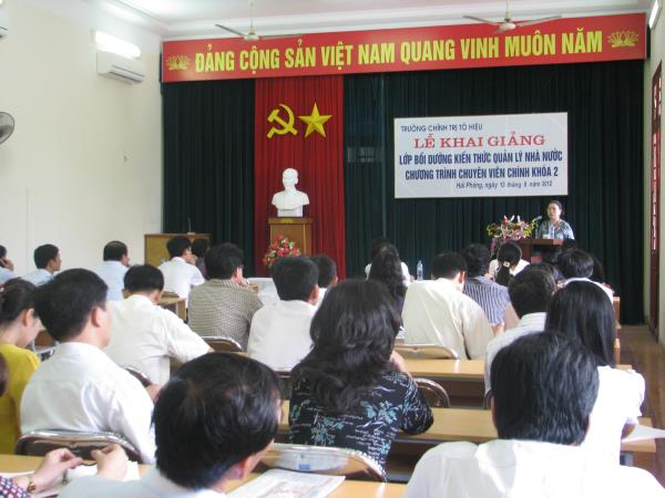 Ngày 13/8/2012, Trường Chính trị Tô Hiệu phối hợp với Sở Nội vụ tổ chức khai giảng lớp bồi dưỡng kiến thức quản lý nhà nước chương trình chuyên viên chính khóa 2. Tới dự, có đồng chí Nguyễn Huy Hảo – Bí thư Đảng ủy, Hiệu trưởng nhà trường, đồng chí Nguyễn Thị Mai – Phó Giám đốc Sở Nội vụ cùng toàn thể 87 học viên của lớp bồi dưỡng.