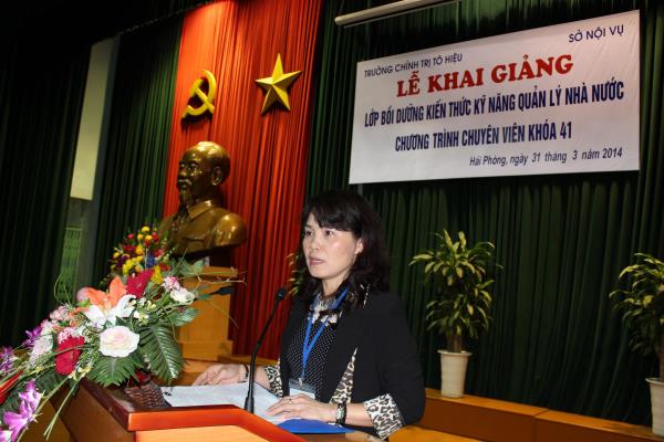 Ngày 31/3/2014, Trường Chính trị Tô Hiệu phối hợp với Sở Nội vụ tổ chức khai giảng lớp Bồi dưỡng kiến thức quản lý nhà nước chương trình chuyên viên khóa 41. Tới dự, có đồng chí Trần Thị Bích Hằng –Hiệu trưởng nhà trường, đồng chí Nguyễn Thị Mai – Phó Giám đốc Sở Nội vụ cùng toàn thể 91 học viên của lớp bồi dưỡng.