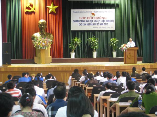 Nhằm thực hiện Hướng dẫn số 63-HD/TWĐTN ngày 31/8/2011 của Trung Ương Đoàn TNCS Hồ Chí Minh về việc “triển khai học tập 6 bài lý luận chính trị trong cán bộ, đoàn viên, thanh niên”, Trường Chính trị Tô Hiệu đã phối hợp với Thành đoàn Hải Phòng xây dựng chương trình, kế hoạch mở lớp bồi dưỡng chương trình giáo dục 6 bài lý luận chính trị cho cán bộ Đoàn cơ sở của thành phố. Sáng ngày 10-5, tại trường Chính trị Tô Hiệu lớp bồi dưỡng đã được khai mạc với sự tham dự của đồng chí Bùi Đức Quang – Thành ủy viên, Bí thư Thành đoàn Hải Phòng, đại diện các Ban của Đảng, đại diện Ban Giám hiệu trường Chính trị Tô Hiệu cùng toàn thể 450 học viên là cán bộ Đoàn cơ sở.