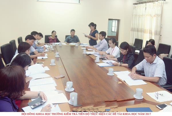Thực hiện Thông báo số 34/TB-TTH ngày 07/8/2017 của Hiệu trưởng Trường, chiều ngày 21/8/2017, tại phòng họp nhà A đã diễn ra cuộc họp kiểm tra giữa kỳ việc thực hiện các nhiệm vụ khoa học và công nghệ cấp Trường năm 2017. Tham dự cuộc họp có các đồng chí thành viên Hội đồng khoa học Trường, chủ nhiệm các đề tài, đề án, nhiệm vụ khoa học cấp Trường năm 2017, Trưởng phòng Tổ chức - Hành chính - Quản trị, phụ trách kế toán Trường. Đồng chí Trần Thị Bích Hằng - Bí thư Đảng ủy, Hiệu trưởng, Chủ tịch Hội đồng khoa học Trường chủ trì cuộc họp.