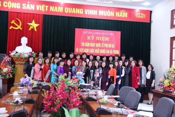 Sáng ngày 06/3/2015, tại Phòng Hội thảo, Công đoàn Trường Chính trị Tô Hiệu đã tổ chức họp mặt kỷ niệm 105 năm Ngày Quốc tế Phụ nữ 8/3 và 1975 năm Khởi nghĩa Hai Bà Trưng. Dự buổi lễ có các đồng chí lãnh đạo nhà trường: Trần Thị Nga - Bí thư Đảng ủy, Phó Hiệu trưởng, Trần Thị Bích Hằng - Phó Bí thư Đảng ủy, Hiệu trưởng, Nguyễn Văn Kính - Chủ tịch Công đoàn, Phó Hiệu trưởng cùng toàn thể cán bộ, viên chức, người lao động nhà trường.