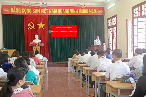 7h30’, ngày 02/4/2018, Trường Chính trị Tô Hiệu tổ chức Lễ Chào cờ và sinh hoạt dưới cờ đầu tháng. Tham dự buổi Lễ, có đồng chí Trần Thị Bích Hằng - Bí thư Đảng ủy, Hiệu trưởng Trường; các đồng chí Phó Hiệu trưởng và toàn thể cán bộ, viên chức, người lao động Trường. Đồng chí Nguyễn Văn Kính - Phó Bí Đảng ủy, Phó Hiệu trưởng Trường chủ trì buổi Lễ.