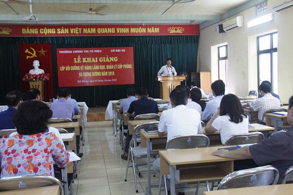 Sau nghi lễ Chào cờ, đồng chí Nguyễn Đình Hoàng - Trưởng phòng Đào tạo, Trường Chính trị Tô Hiệu đã công bố quyết định mở lớp và phân công cán bộ quản lý lớp học. Theo đó, lớp Bồi dưỡng kỹ năng lãnh đạo, quản lý cấp phòng và tương đương năm 2018 gồm 53 học viên là lãnh đạo và dự nguồn các chức danh lãnh đạo, quản lý cấp phòng và tương đương tại các Sở, Ban ngành thành phố và các quận, huyện trong thành phố. ThS. Nguyễn Vương Long - Phó Trưởng khoa Xây dựng Đảng được phân công làm Chủ nhiệm lớp.