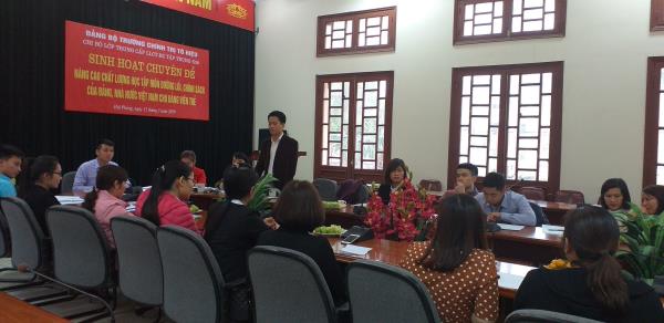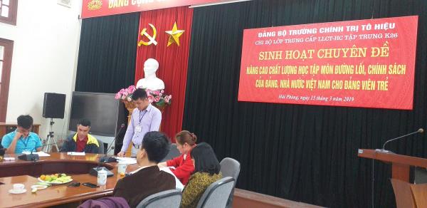 Thực hiện Chương trình công tác năm 2019 của Đảng ủy Trường, căn cứ Kế hoạch hoạt động của Chi bộ Lớp, chiều ngày 15/3/2019 tại phòng Hội thảo, Chi bộ lớp Trung cấp lý luận CT - HC, hệ tập trung, khóa 26 tổ chức sinh hoạt chuyên đề Quý I, năm 2019, chủ đề: “Nâng cao chất lượng học tập môn Đường lối, chính sách của Đảng, Nhà nước Việt Nam cho đảng viên trẻ”.