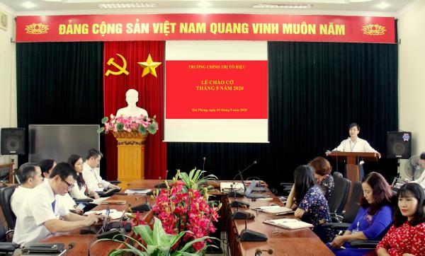 Sau nghi lễ chào cờ, thay mặt Đảng ủy, Ban Giám hiệu Trường, đồng chí Nguyễn Văn Hiểu đánh giá công tác tháng 4 và triển khai nhiệm vụ công tác của Nhà trường trong tháng 5. Theo đó, trong tháng 4, do tình hình dịch bệnh viêm đường hô hấp cấp do chủng mới của virut Corona (Covid - 19) gây ra có diễn biến phức tạp, Trường Chính trị Tô Hiệu đã thực hiện các biện pháp cấp bách phòng, chống dịch COVID-19 theo chỉ đạo của Trung ương và Thành phố, thực hiện giãn cách xã hội, cho học viên các lớp nghỉ học, đội ngũ cán bộ, viên chức, người lao động luân phiên làm việc tại nhà. Các hoạt động chào mừng kỷ niệm 70 năm thành lập Trường được điều chỉnh phù hợp yêu cầu của tình hình dịch bệnh. Trong tháng, Trường đã xuất bản được các ấn phẩm khoa học: Tập tài liệu Tọa đàm kỷ niệm 90 năm ngày thành lập Đảng Cộng sản Việt Nam, Nội san số 1, Kỷ yếu kỷ niệm 70 năm thành lập Trường. Đảng bộ Trường tổ chức thành công đại hội nhiệm kỳ 2020 - 2025 vào chiều ngày 27/4, bầu cấp ủy nhiệm kỳ mới gồm 7 đồng chí.