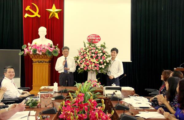 Đồng chí Phạm Xuân Thanh – TUV, Bí thư Đảng ủy Khối các cơ quan thành phố tặng hoa chúc mừng Trường nhân kỉ niệm 70 năm ngày thành lập (03/5/1950 - 03/5/2020)