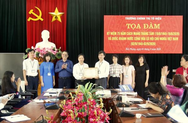 Sáng ngày 01/9/2020, Trường Chính trị Tô Hiệu tổ chức: Lễ Chào cờ, sinh hoạt dưới cờ tháng 9 năm 2020 và Tọa đàm “Kỉ niệm 75 năm Cách mạng tháng Tám (19/8/1945 - 19/8/2020) và Quốc khánh nước Cộng hòa xã hội chủ nghĩa Việt Nam (02/9/1945 - 02/09/2020)”. Tham dự buổi lễ có: Đồng chí Nguyễn Văn Hiểu - Bí thư Đảng ủy, Hiệu trưởng Trường; Đồng chí Nguyễn Thị Hải Hà - Phó Bí thư Đảng ủy, Phó Hiệu trưởng Trường cùng toàn thể cán bộ, viên chức, người lao động Nhà trường.