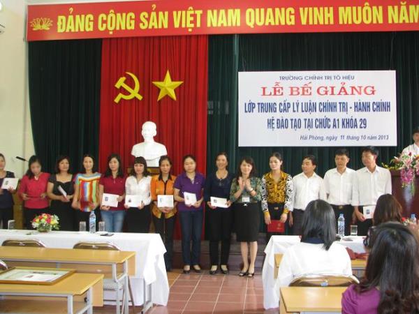 Sáng ngày 11/10/2013, Trường Chính trị Tô Hiệu tổ chức Lễ bế giảng Lớp Trung cấp lý luận chính trị - hành chính hệ tại chức A1K29. Đồng chí Trần Thị Bích Hằng – Phó Hiệu trưởng Trường cùng đại diện Ban Tổ chức Thành ủy Hải Phòng tới dự.