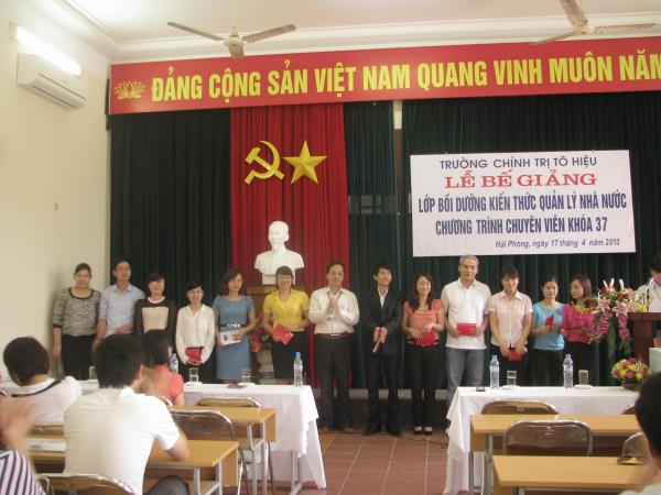 Sáng ngày 17/4/2013, Trường Chính trị Tô Hiệu đã tổ chức Lễ bế giảng chương trình chuyên viên khóa 37. Tới dự có đồng chí Nguyễn Huy Hảo – Hiệu trưởng nhà trường; đại diện phòng chức năng Sở Nội vụ, lãnh đạo các khoa, phòng nhà trường cùng toàn thể 69 học viên của khóa học.