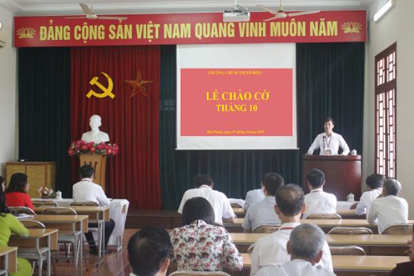Sáng ngày 07/10/2019, Trường Chính trị Tô Hiệu tổ chức Lễ Chào cờ, sinh hoạt dưới cờ tháng 10/2019. Dự buổi Lễ có đồng chí Nguyễn Văn Hiểu - Bí thư Đảng ủy, Hiệu trưởng Trường; các đồng chí Phó Hiệu trưởng và cán bộ, viên chức, người lao động Trường.