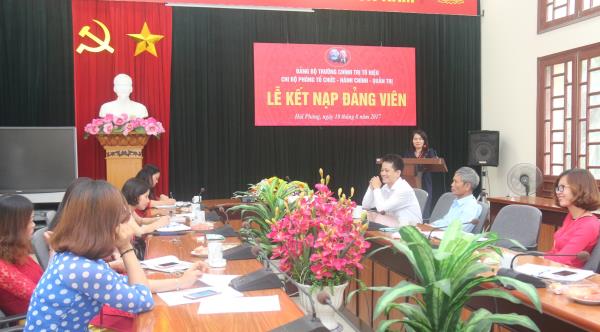 Thực hiện Quyết định số 500-QĐ/ĐU ngày 28/7/2017 của Ban thường vụ Đảng ủy Khối Các cơ quan thành phố, chiều ngày 10/8/2017, Chi bộ Phòng Tổ chức - Hành chính - Quản trị đã tiến hành tổ chức lễ kết nạp đảng viên mới đối với quần chúng ưu tú Nguyễn Thị Minh.