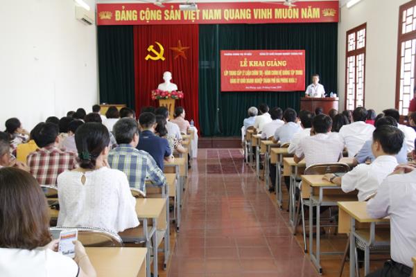 Thực hiện kế hoạch công tác năm 2019, sáng 19/8/2019, Trường Chính trị Tô Hiệu phối hợp với Đảng ủy Khối Doanh nghiệp thành phố tổ chức Lễ Khai giảng lớp Trung cấp Lý luận chính trị - hành chính, hệ không tập trung, Đảng ủy Khối Doanh nghiệp, khóa 2.