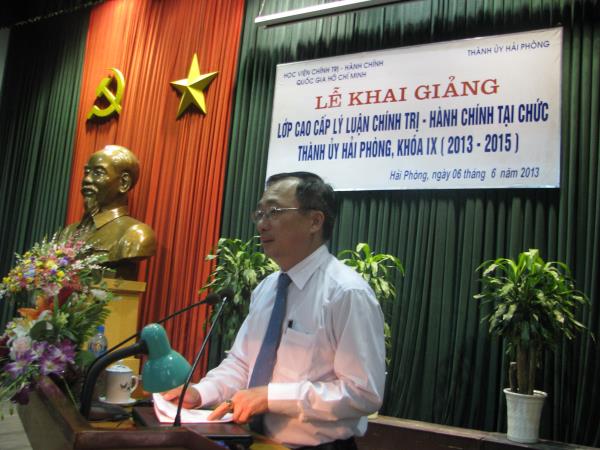 Thực hiện Thông báo số 43/TB-HVCT-HCQG ngày 29/2/2012 của Giám đốc Học viện Chính trị - Hành chính Quốc gia Hồ Chí Minh về kế hoạch đào tạo, bồi dưỡng cán bộ năm học 2012 - 2013, sáng ngày 6/6/2013, tại Trường Chính trị Tô Hiệu, Học viện Chính trị - Hành chính quốc gia Hồ Chí Minh phối hợp với Thành ủy Hải Phòng long trọng tổ chức Lễ khai giảng lớp Cao cấp lý luận chính trị - hành chính hệ tại chức Thành ủy Hải Phòng khóa IX (2013-2015). Các đồng chí: PGS.TS Trương Thị Thông – Phó giám đốc Học viện Chính trị - Hành chính Quốc gia Hồ Chí Minh; TS Nguyễn Văn Thành - Uỷ viên TƯ Đảng, Bí thư Thành uỷ, Chủ tịch HĐND thành phố; đại diện lãnh đạo Vụ quản lý đào tạo; lãnh đạo trường Chính trị Tô Hiệu đã tới dự.