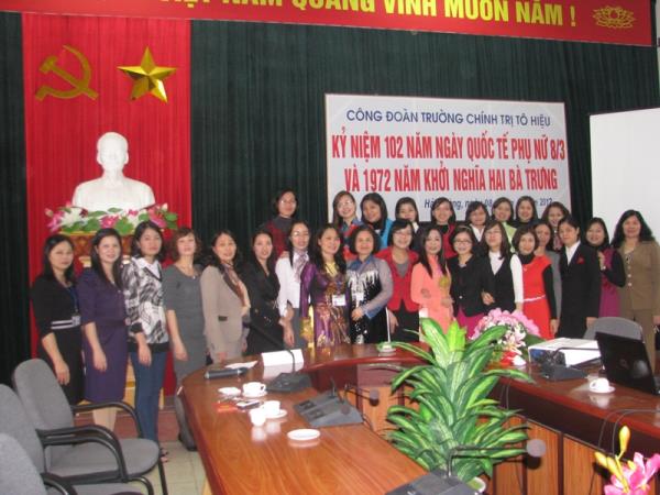 Sáng ngày 8/3/2012, Công đoàn Trường Chính trị Tô Hiệu đã tổ chức lễ kỷ niệm 102 năm ngày quốc tế phụ nữ và 1972 năm khởi nghĩa Hai Bà Trưng. Đến dự buổi lễ có các đồng chí trong Đảng uỷ, Ban Giám hiệu nhà trường, lãnh đạo các khoa, phòng, đại diện các tổ chức đoàn thể trong trường cùng tập thể cán bộ, giảng viên, lao động nhà trường.