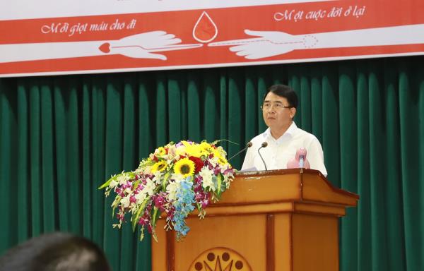 Đồng chí Lê Khắc Nam, Ủy viên Ban Thường vụ Thành ủy, Phó chủ tịch UBND thành phố, Trưởng Ban chỉ đạo vận động HMTN thành phố phát biểu khai mạc Ngày hội hiến máu tình nguyện của Khối thi đua