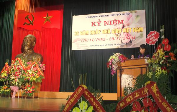 Hòa chung với không khí tưng bừng phấn khởi của cả nước Chào mừng 36 năm Ngày Nhà giáo Việt Nam. Hôm nay, Trường Chính trị Tô Hiệu tổ chức buổi gặp mặt giao lưu giữa các thế hệ giảng viên, viên chức của Trường, các đồng chí báo cáo viên, giảng viên kiêm chức, đại diện các Lớp học viên đang học tập tại Trường. Thay mặt Đảng ủy, Ban Giám hiệu nhà trường, tôi xin trân trọng cảm ơn, gửi lời chào, lời chúc tốt đẹp nhất đến các đồng chí, chúc các đồng chí luôn mạnh khỏe và hạnh phúc trong cuộc sống.