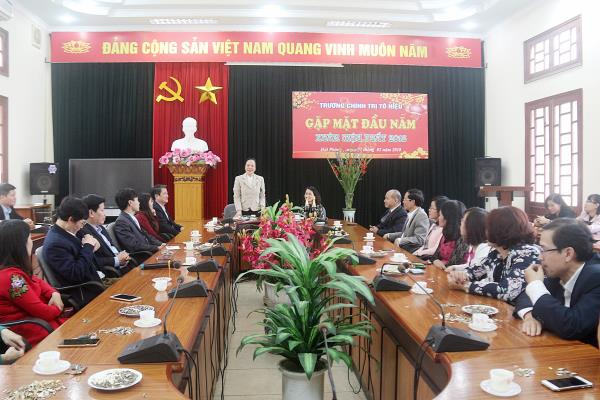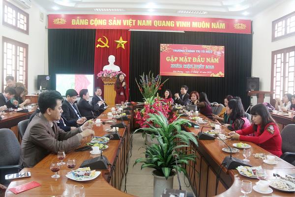 8h sáng, ngày 21/02/2018 (ngày 06 tháng Giêng năm Mậu Tuất 2018) - ngày làm việc đầu tiên sau Kỳ nghỉ Tết nguyên đán Mậu Tuất 2018 theo quy định của Chính phủ - Trường Chính trị Tô Hiệu đã tổ chức Buổi gặp mặt đầu năm, chúc Tết cán bộ, viên chức, người lao động nhà trường nhân dịp năm mới Mậu Tuất 2018. Tham dự và chủ trì Buổi gặp mặt có đồng chí Trần Thị Bích Hằng - Bí thư Đảng ủy, Hiệu trưởng trường; các đồng chí Phó Hiệu trưởng, lãnh đạo các tổ chức đoàn thể, cùng toàn thể cán bộ, viên chức, người lao động trường.