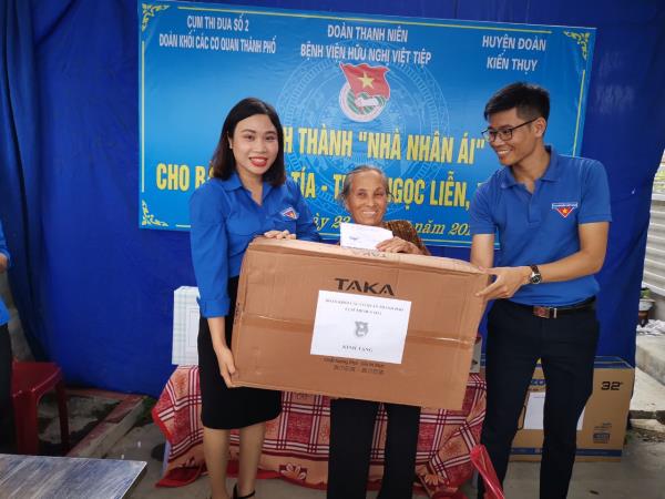 Chiều ngày 23/7/2019, Ban chấp hành Chi đoàn cơ quan đã cùng các đồng chí cán bộ đoàn trong Cụm thi đua số 2 Đoàn Khối các cơ quan thành phố tới dự Lễ khánh thành “ Nhà Nhân ái” cho bà Cao Thị Tía tại xã Đại Hà, huyện Kiến Thụy - Vợ liệt sỹ Phạm Văn Mừng hy sinh năm 1969 khi tham gia kháng chiến chống Mỹ.