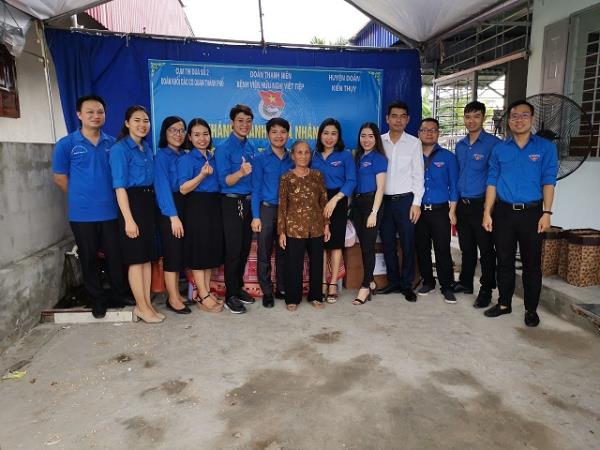 Ban chấp hành Chi đoàn cơ quan cùng các đồng chí cán bộ đoàn trong Cụm thi đua số 2 Đoàn Khối các cơ quan thành phố tại Lễ khánh thành “ Nhà Nhân ái” cho bà Cao Thị Tía tại xã Đại Hà, huyện Kiến Thụy