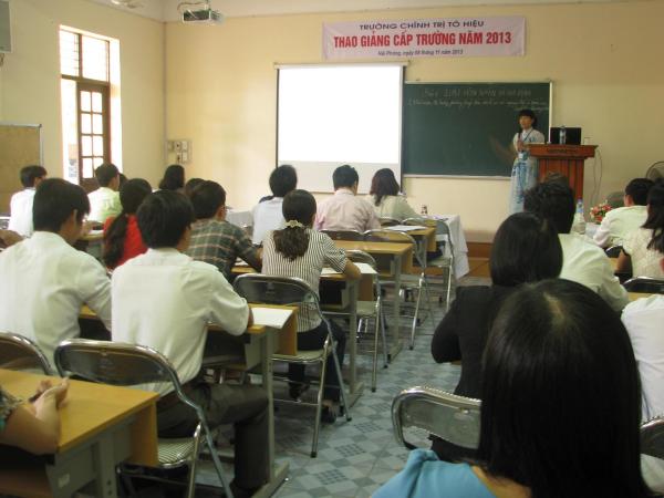 Thực hiện Kế hoạch số 11/KH-TTH ngày 05/9/2013 và Thông báo số 20/TB-TTH của Hiệu trưởng trường Chính trị Tô Hiệu về việc tổ chức thao giảng năm 2013, trên cơ sở kết quả thao giảng năm 2013 của các khoa, trong ngày 08/11, Trường Chính trị Tô Hiệu đã tổ chức thao giảng cấp trường. Kết quả thao giảng sẽ là cơ sở để chọn cử giảng viên tham gia Hội thi giảng viên dạy giỏi toàn quốc các trường chính trị tỉnh, thành phố lần thứ V. Đồng thời đây cũng là một trong những hoạt động nhằm thiết thực chào mừng kỷ niệm 31 năm Ngày Nhà giáo Việt Nam (20/11/1982 – 20/11/2013).