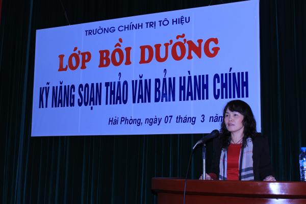 Thực hiện kế hoạch đào tạo, bồi dưỡng năm 2014, chiều ngày 07/3/2014, Trường Chính trị Tô Hiệu đã tổ chức Lớp Bồi dưỡng kỹ năng soạn thảo văn bản hành chính. Tham dự có đồng chí Trần Thị Bích Hằng – Hiệu trưởng và tập thể Ban Giám hiệu, lãnh đạo, viên chức, giảng viên các khoa, phòng nhà trường; các Trung tâm Bồi dưỡng chính trị quận, huyện trên địa bàn thành phố.