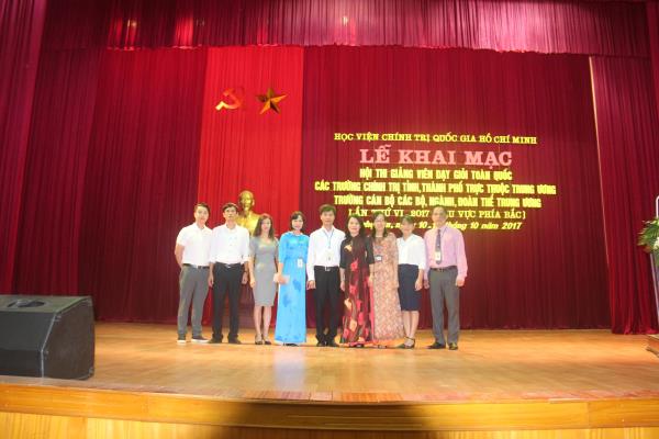 Trong thời gian 05 ngày (từ ngày 09/10-13/10/2017), Trường Chính trị Tô Hiệu đã cử 02 giảng viên (đồng chí Nguyễn Vương Long – Phó Trưởng khoa Xây dựng Đảng và đồng chí Bùi Thị Hồng Anh – Giảng viên khoa Dân vận) tham gia Hội thi giảng viên dạy giỏi toàn quốc các trường chính trị tỉnh, thành phố trực thuộc Trung ương, trường cán bộ của bộ, ngành, đoàn thể Trung ương lần thứ VI - năm 2017 (khu vực phía Bắc) do Học viện Chính trị Quốc gia Hồ Chí Minh tổ chức tại Trường Chính trị tỉnh Nghệ An.