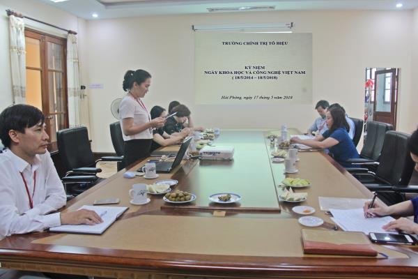 Chiều ngày 17/5/2018, Trường Chính trị Tô Hiệu tổ chức Kỷ niệm Ngày khoa học và công nghệ Việt Nam (18/5/2014 - 18/5/2018). Dự kỷ niệm có các đồng chí: Trần Thị Bích Hằng - Bí thư Đảng ủy, Hiệu trưởng, Chủ tịch Hội đồng khoa học Trường; các đồng chí Phó Hiệu trưởng; thành viên của Hội đồng khoa học Trường; và cán bộ, chuyên viên Phòng Nghiên cứu khoa học - Thông tin - Tư liệu.