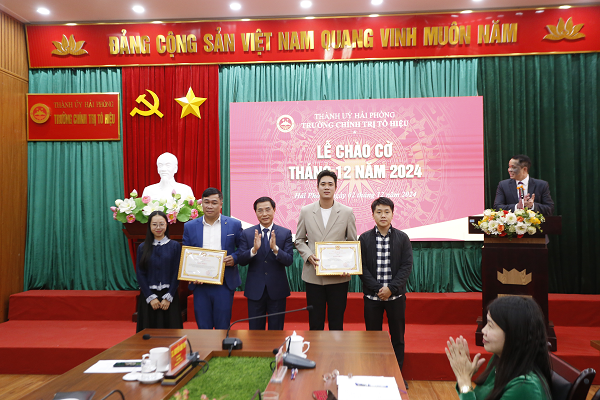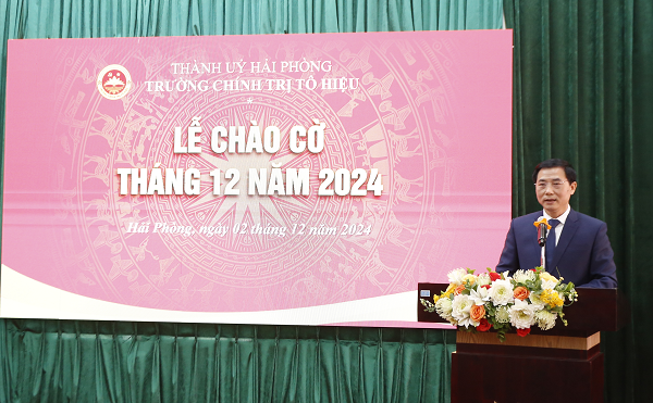 Sau nghi lễ chào cờ, thay mặt Đảng ủy, Lãnh đạo Trường, đồng chí Nguyễn Thị Hải Hà đánh giá khái quát các công việc Trường đã thực hiện trong tháng 11 và triển khai nhiệm vụ công tác tháng12. Theo đó, trong tháng 11, Trường triển khai các hoạt động như: tổ chức khai giảng lớp bồi dưỡng lãnh đạo, quản lý cấp phòng và tương đương quận Lê Chân, lớp bồi dưỡng cập nhật kiến thức dành cho cán bộ quy hoạch Ủy viên Ban Chấp hành Đảng bộ huyện Thủy Nguyên nhiệm kỳ 2025 - 2030; tổ chức nghiệm thu 5 đề tài nghiên cứu khoa học cấp trường; đánh giá tiết giảng của các đồng chí giảng viên được cử tham dự Hội thi giảng viên dạy giỏi toàn quốc năm 2025; gặp mặt kỷ niệm 42 năm Ngày Nhà giáo Việt Nam và đón nhận Cờ thi đua của Chính phủ; tổng kết hoạt động của Cụm thi đua các trường chính trị khu vực Đồng bằng Sông Hồng cùng nhiều hoạt động khác trong tháng.