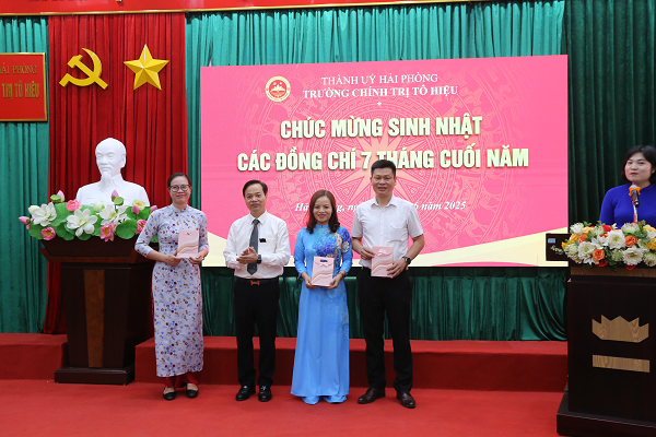 Nhân dịp chào cờ đầu tháng, Công đoàn Trường tặng hoa và quà chúc mừng các đồng chí có sinh nhật trong 7 tháng cuối năm; đồng thời từ 01/6/2025, Công đoàn Trường Chính trị Tô Hiệu chính thức giải thể và kết thúc hoạt động của Ban Chấp hành Công đoàn Trường theo quy định./.