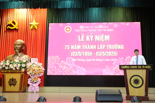 Thay mặt Lãnh đạo thành phố, đồng chí Hoàng Minh Cường, Phó Chủ tịch UBND thành phố đã gửi lời chúc mừng tốt đẹp nhất cũng như biểu dương, ghi nhận những cống hiến, đóng góp của tập thể các thế hệ cán bộ, viên chức Nhà trường trong sự nghiệp đào tạo, bồi dưỡng cán bộ. 75 năm qua, trên chặng đường xây dựng và phát triển với không ít khó khăn nhưng Trường luôn bám sát nhiệm vụ chính trị, đáp ứng kịp thời yêu cầu đào tạo bồi dưỡng cán bộ cho thời kỳ đổi mới. Nhà trường đã từng bước mở rộng loại hình, đa dạng hoá hình thức, đổi mới phương thức đào tạo, bồi dưỡng, chú trọng nâng cao chất lượng, không ngừng cải tiến quy trình quản lý đào tạo, bồi dưỡng; tăng cường nghiên cứu lý luận, tổng kết thực tiễn, tập trung làm sáng tỏ những vấn đề mới do thực tiễn thành phố đặt ra, tích cực tham gia vào công tác đấu tranh phản bác những quan điểm sai trái, thù địch; tăng cường công tác quản lý hệ thống, kiện toàn tổ chức bộ máy theo hướng tinh gọn, hiệu lực, hiệu quả; xây dựng đội ngũ cán bộ, giảng viên có trình độ cao, bản lĩnh, lập trường vững vàng và mẫu mực; từng bước đầu tư, xây dựng cơ sở vật chất - kỹ thuật hiện đại, đồng bộ.