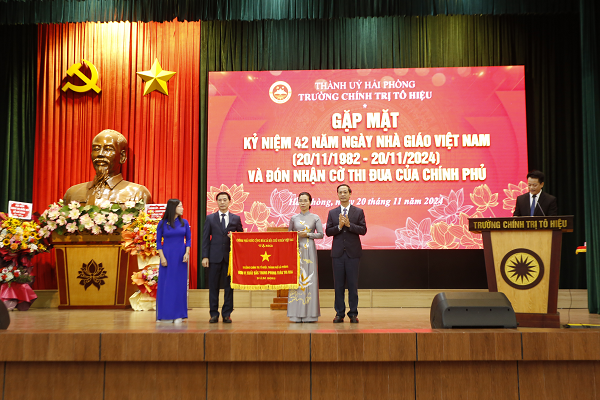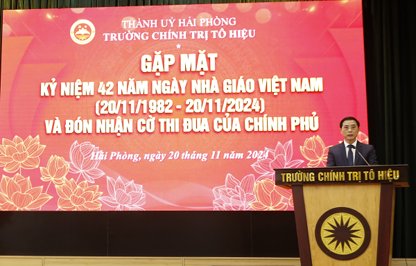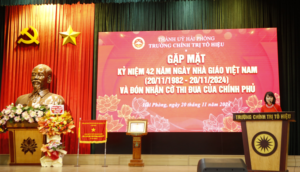 Sáng ngày 20/11, Trường Chính trị Tô Hiệu tổ chức Kỷ niệm 42 năm Ngày Nhà giáo Việt Nam (20/11/1982 - 20/11/2024) và đón nhận Cờ thi đua của Chính phủ. Dự Kỷ niệm có các đồng chí: Đỗ Mạnh Hiến, Phó Bí thư Thường trực Thành ủy; Nguyễn Văn Thuận, Chủ tịch Hội Nhân lực Nhân tài thành phố, nguyên Ủy viên Trung ương Đảng, nguyên Bí thư Thành ủy Hải Phòng, nguyên Hiệu trưởng Trường; Đào Khánh Hà, Ủy viên BTV Thành uỷ, Trưởng Ban Tuyên Giáo Thành ủy; Lê Khắc Nam, Ủy viên Thành ủy, Phó Chủ tịch Ủy ban nhân dân thành phố; TS Nguyễn Kim Pha, Bí thư Đảng ủy, Hiệu trưởng Trường; Lãnh đạo, cán bộ, viên chức Trường Chính trị Tô Hiệu qua các thời kỳ; các đồng chí báo cáo viên của Trường; Lãnh đạo Trung tâm chính trị các quận, huyện cùng đại diện học viên các lớp.