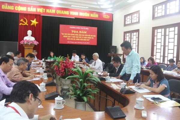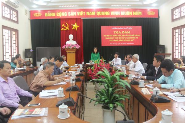 Thực hiện Kế hoạch kỷ niệm 35 năm Ngày Nhà giáo Việt Nam (20/11/1982 - 20/11/2017), chiều ngày 16/11/2017, Trường Chính trị Tô Hiệu tổ chức tọa đàm “Vai trò của giảng viên, báo cáo viên đối với việc nâng cao ý thức học tập lý luận chính trị của cán bộ, đảng viên hiện nay”. Tham dự tọa đàm có các đồng chí: Trần Thị Bích Hằng - Bí thư Đảng ủy, Hiệu trưởng Trường; các đồng chí Phó Hiệu trưởng; giảng viên thỉnh giảng, báo cáo viên cùng toàn thể cán bộ, giảng viên, chuyên viên các khoa, phòng Trường.