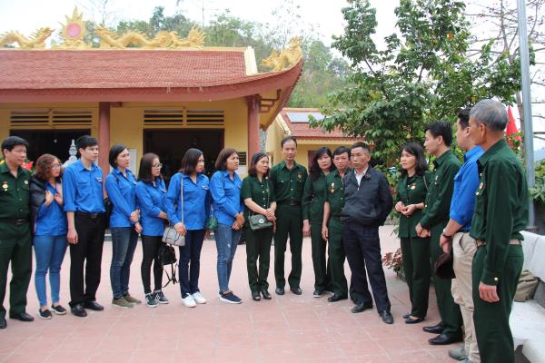 Đoàn lắng nghe những câu chuyện của một đồng chí cựu chiến binh đã từng chiến đấu tại mặt trận Vị Xuyên