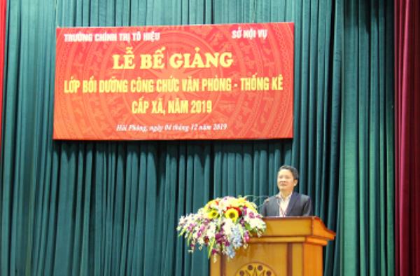 Thực hiện Kế hoạch đào tạo, bồi dưỡng năm 2019, sáng ngày 04/12/2019, Trường Chính trị Tô Hiệu phối hợp với Sở Nội vụ tổ chức Lễ bế giảng lớp Bồi dưỡng công chức văn phòng - thống kê cấp xã năm 2019. Dự Lễ bế giảng có đồng chí Nguyễn Văn Kính – Phó Bí thư Đảng ủy, Phó Hiệu trưởng Trường; đại diện lãnh các khoa, phòng nhà trường và học viên của lớp học.