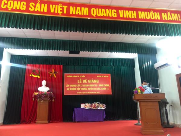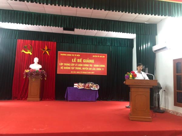 Sáng ngày 25/6/2021, Trường Chính trị Tô Hiệu phối hợp với Huyện ủy An Lão tổ chức lễ bế giảng lớp Trung cấp lý luận chính trị - hành chính, hệ không tập trung, huyện An Lão, khóa 11.