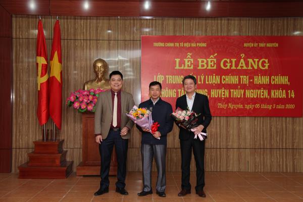 Chiều ngày 05/3/2020, Trường Chính trị Tô Hiệu phối hợp với Huyện ủy Thủy Nguyên tổ chức Lễ bế giảng lớp Trung cấp lý luận chính trị - hành chính hệ không tập trung, huyện Thủy Nguyên, khóa 14. Tới dự có các đồng chí Nguyễn Văn Kính - Phó Bí thư Đảng ủy, Phó Hiệu trưởng Trường; Đỗ Tiến Lợi - Phó Bí thư Thường trực Huyện ủy; đồng chí Nguyễn Văn Viển - UVBTV, Trưởng Ban Tuyên giáo Huyện ủy, Giám đốc Trung tâm Bồi dưỡng chính trị huyện; các đồng chí lãnh đạo các ban Xây dựng đảng Huyện ủy; cán bộ, giảng viên các khoa, phòng nhà trường và toàn thể học viên của lớp.