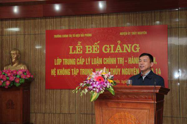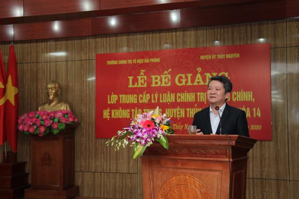 Phát biểu giao nhiệm vụ cho các học viên, đồng chí Đỗ Tiến Lợi đề nghị học viên sau khi kết thúc khóa học cần phát huy những kiến thức đã được nghiên cứu, học tập; vận dụng sáng tạo kiến thức lý luận vào thực tiễn, gương mẫu, đi đầu thực hiện tốt các nhiệm vụ được giao; đáp ứng yêu cầu xây dựng và phát triển huyện Thủy Nguyên trong giai đoạn hiện nay.