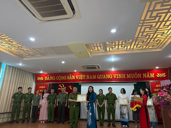 TS. Nguyễn Thị Hải Hà, Phó Bí thư Đảng ủy, Phó Hiệu trưởng thường trực trao Giấy khen cho học viên có thành tích tiêu biểu