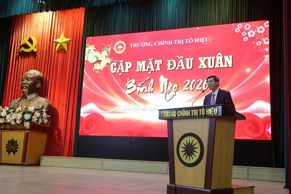 Thay mặt Đảng ủy, Lãnh đạo Trường, TS Nguyễn Văn Phú , Bí thư Đảng ủy, Hiệu trưởng Trường gửi đến cán bộ, giảng viên, viên chức, người lao động cùng người thân và gia đình lời chúc mừng năm mới 2026 và Xuân Bính Ngọ Sức khoẻ, Hạnh phúc, An khang, Thịnh vượng! Đồng chí Bí thư Đảng uỷ nhấn mạnh, năm 2025 Chúng ta đã chia tay năm cũ 2025 với dấu ấn và nhiều kết quả đã đạt được. Đặc biệt, năm 2025 đánh dấu bước chuyển quan trọng của Trường Chính trị Tô Hiệu trong việc thực hiện chủ trương lớn của Trung ương và Học viện Chính trị quốc gia Hồ Chí Minh về sắp xếp, tinh gọn tổ chức bộ máy hệ thống các trường chính trị. Trường Chính trị Tô Hiệu hiện nay được thành lập từ ngày 01/7/2025 trên cơ sở 02 trường hợp nhất: Trường Chính trị Tô Hiệu (cũ) và Trường Chính trị tỉnh Hải Dương theo Quyết định số 48-QĐ/TU ngày 01/7/2025 của Ban Chấp hành Đảng bộ thành phố Hải Phòng về việc thành lập Trường Chính trị Tô Hiệu. Trong năm 2025, Nhà trường đã hoàn thành việc hợp nhất theo đúng lộ trình, kịp thời kiện toàn bộ máy tổ chức, cán bộ lãnh đạo, quản lý; bảo đảm duy trì ổn định hoạt động đào tạo, bồi dưỡng, nghiên cứu khoa học trong tình hình mới. Trường Chính trị Tô Hiệu đã thực hiện tốt các nhiệm vụ chính trị được giao trên các mặt công tác, triển khai đồng bộ, toàn diện, tham gia tích cực vào quá trình đào tạo, bồi dưỡng cán bộ, lãnh đạo các cấp, nhất là cấp cơ sở đạt được những kết quả đáng tự hào, nhận được sự tin cậy của cấp uỷ chính quyền, đoàn thể và nhân dân;