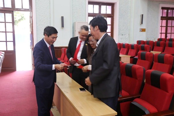 Tập thể lãnh đạo Trường chúc mừng và lì xì đầu năm